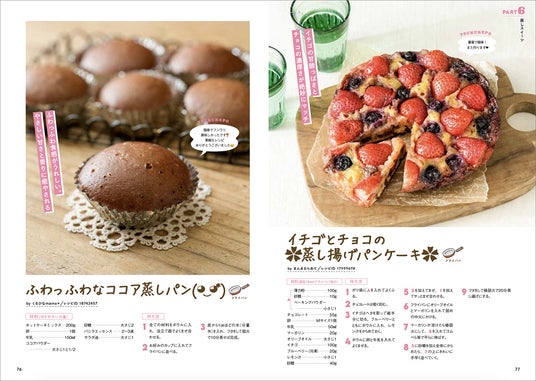 オーブンがなくても、せいろやフライパンを使えば、気軽にいろいろなお菓子が作れます。蒸しパンやプリン、フルーツを使ったケーキなどのおやつが大集合!