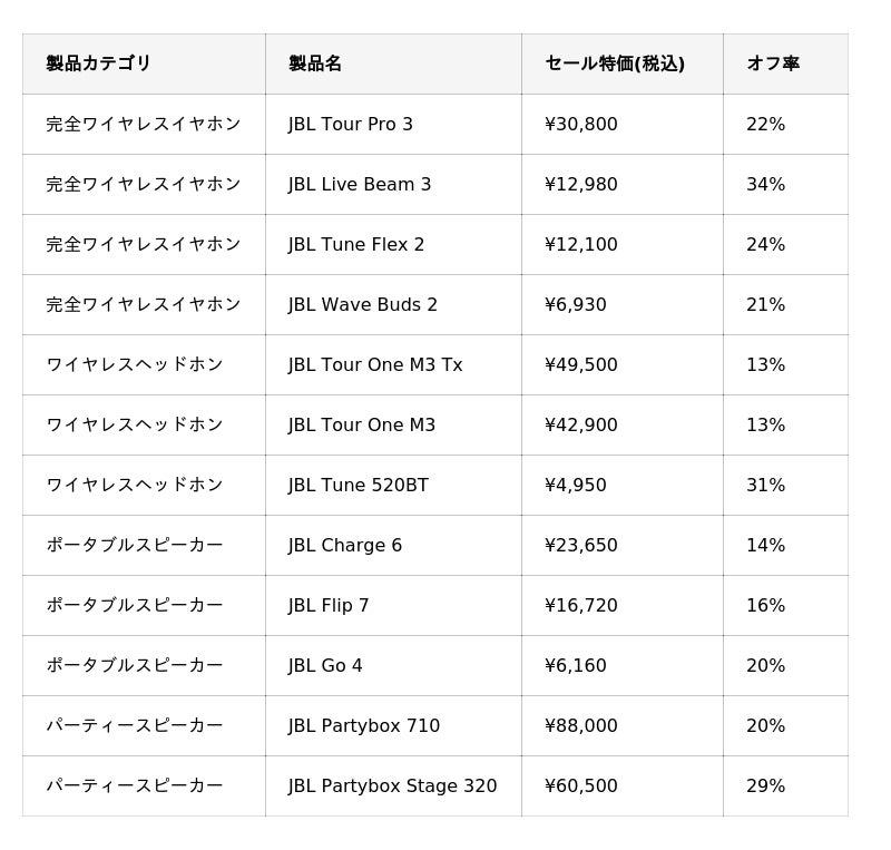 ※オフ率は、JBL公式サイトにおける2025年11月18日時点の販売価格を基準に当社が算出した数値です。