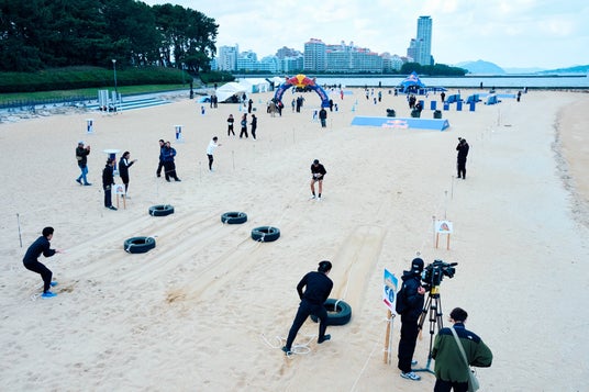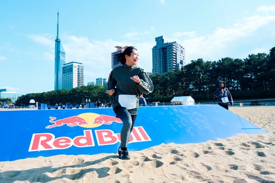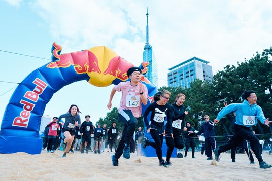 レッドブル・ジャパン株式会社は、フィットネスイベント「Red Bull 砂山走」を11月18日(火)に福岡市のシーサイドももち海浜公園で日本初開催しました。福岡市民に馴染み深い砂浜に様々な障害物が設置された全長約1kmの特設コースを、九州各地から集まった104名の参加者が次から次へと全力疾走してタイムを競いました。学生の部は福岡市の大学生、西上響さん(21歳)、一般の部は福岡市の会社員、西純平さん(30歳)が優勝しました。