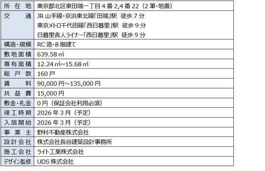 野村不動産株式会社(本社:東京都港区/代表取締役社長:松尾大作、以下「当社」)は、2025 年2 月に竣工した「TOMORE 品川中延(東京都品川区)」に続く、コリビング賃貸レジデンス※1 第2 弾として、利便性の高い山手線沿線に、総戸数160 戸の大規模物件「TOMORE 田端」(本物件)を新たに発表いたします。
