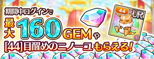 期間中ログインするだけで最大160GEMや「[44]目醒めのニノーユ」がもらえます。