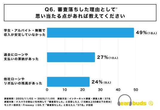 Q6:審査落ちの理由(自己申告、Q5で「審査落ち」と回答 n=37)