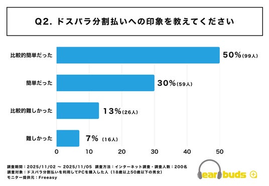 Q2:ドスパラで利用した分割払いへの印象(体感の難易度)