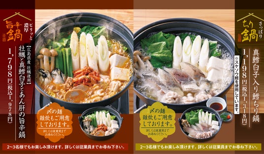 株式会社モンテローザ(本社:東京都杉並区 代表取締役:大神輝博)は、2025年12月1日(月)から、「千年の宴」「福福屋」「月の宴」「竹取酒物語」で「冬の味覚フェア」を開催します。