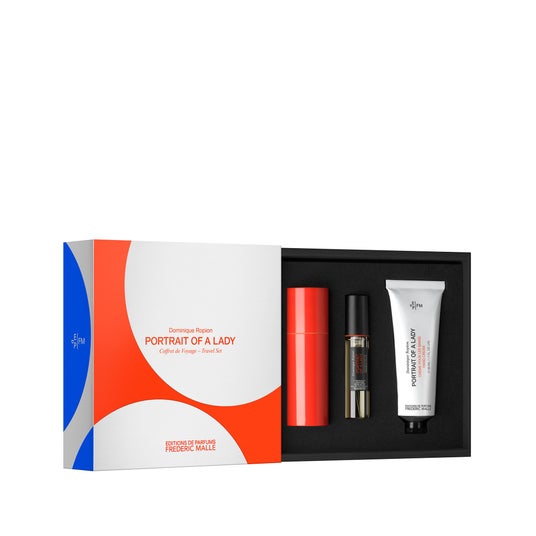 ターキッシュローズを贅沢に配合し、「貴婦人の肖像」と呼ぶにふさわしい究極のエレガンスを描いたベストセラーフレグランス「ポートレイト オブ ア レディー」。ブランドの象徴的なカラー、レッドのトラベルケースがついた、持ち歩きに便利なフレグランスに、ハンドクリームをプラスした限定セットを特別なデザインボックスに。