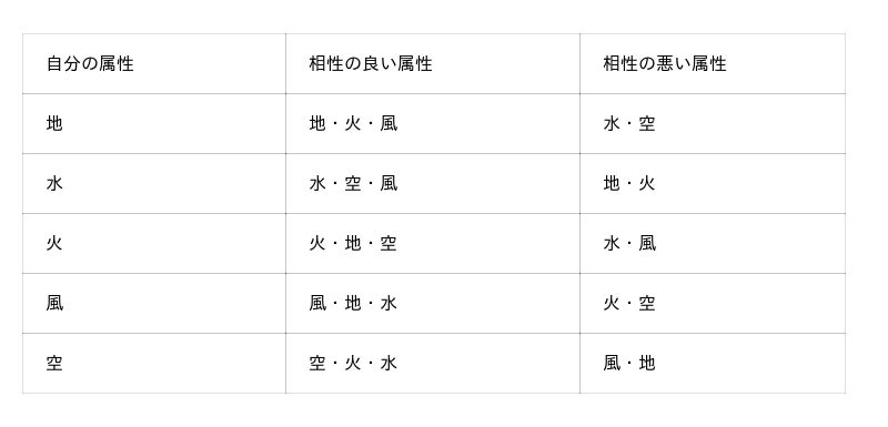 次に、「相性の良い属性」「相性の悪い属性」を確認してみましょう。