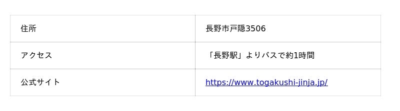 戸隠神社は、奥社・中社・宝光社・九頭龍社・火之御子社の五社から成り立っています。