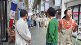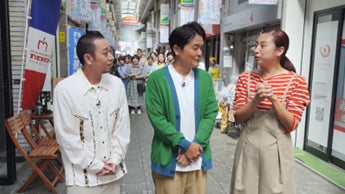 今回は、実際の商店街をお借りした大規模なロケ撮影を実施。前回の続編ということで、引き続き、ゲストが くっきー!さんということもあり、千鳥のおふたりはリラックスした様子で撮影に臨んでいました。撮影中、くっきー!さんがロケを見守る群衆のなかに登場して突然叫ぶシーンでは、気合の入った“千鳥!”コールが炸裂し、現場が圧倒される一幕も。