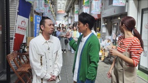 古着屋店のシーンでは、ショーウィンドウ越しに くっきー!さんが『レイクのアレってなんや!』と力強く叫ぶセリフのバリエーションをアドリブで連発し、大悟さん、ノブさんをはじめ、エキストラの方々を含めた現場全体が大きな笑いに包まれる場面も。路上で千鳥のおふたりに向かって叫びながら迫るシーンでは、監督と歩くスピード感や声の大きさ・ニュアンスを入念に確認し、少し離れた位置に立つ千鳥のおふたりとの円滑な掛け合いや、多くのエキストラの方と息を合わせるために事前に何度も練習を重ねるなど、気合十分で撮影に臨む姿が印象的でした。