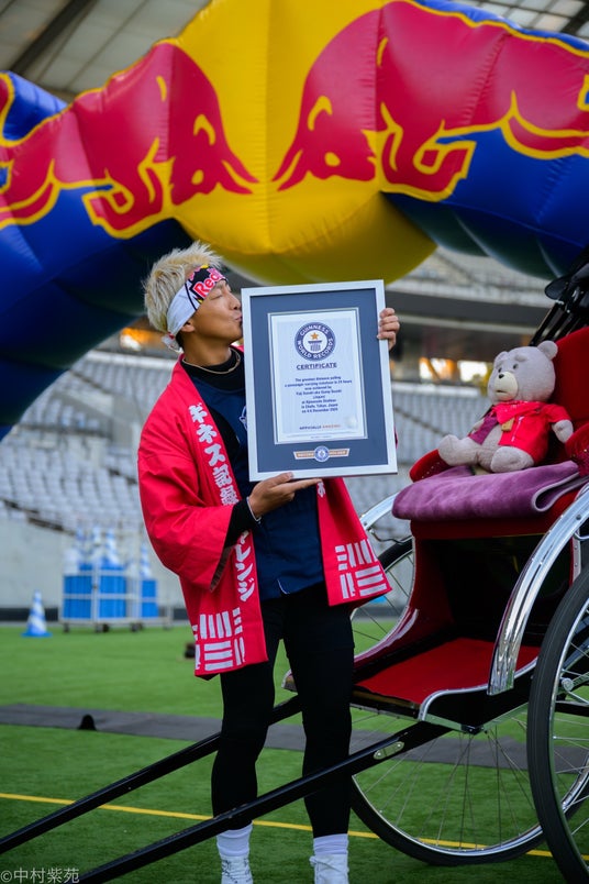 世界五大陸を横断中の旅人「ガンプ鈴木」こと鈴木悠司は、12月4日~5日に味の素スタジアムで“24時間人力車チャレンジ”に挑戦。乗客を乗せたまま一睡もせず走り続け、129.733kmを走破。ギネス世界記録(TM)「24時間で人を乗せた人力車の最長距離(Greatest distance pulling a passenger-carrying rickshaw in 24 hours)」として認定されました。