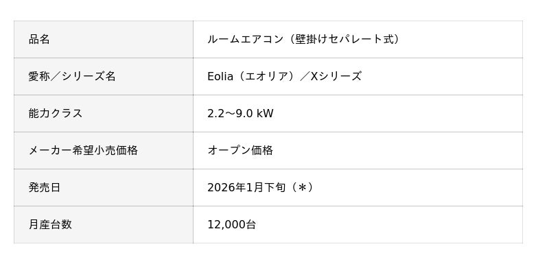 ▼[プレスリリース]ルームエアコン エオリア Xシリーズを発売(2025年12月5日)