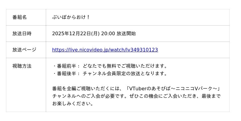 VTuber×ボカロ楽曲で贈るニコ生新番組!「ぶいぼからおけ!」12月22日(月)20時より放送開始!
