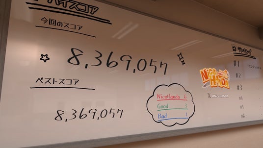 スコアボードもホワイトボード風でまるで教室のように見える