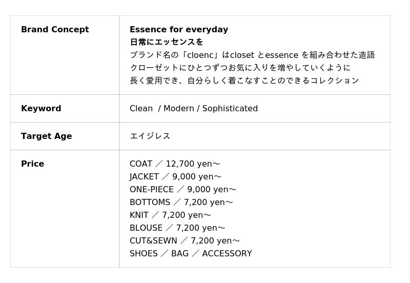 【cloenc:Brand Outline】