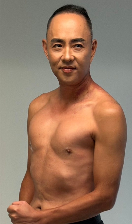 自身も体験したこの技術は「筋トレだけでは辿りつけない肉体美を、手術で再現する」ことをコンセプトに、胸筋・上腕筋・腹直筋(シックスパック)まで幅広く対応しています。