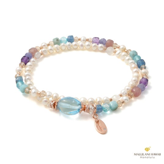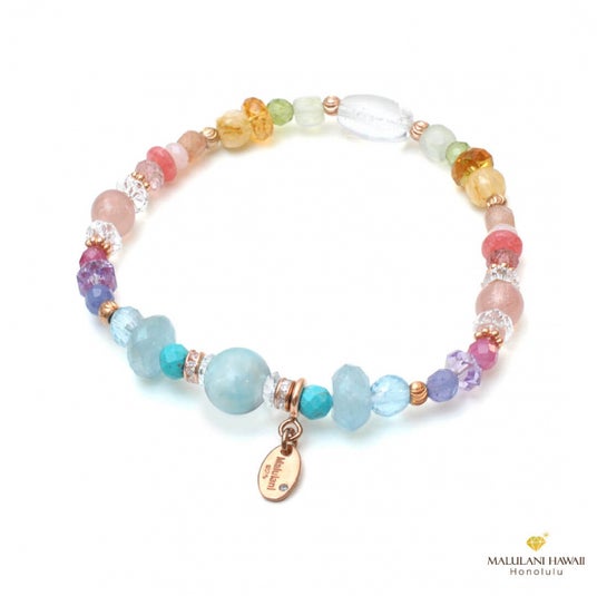 愛と平和の象徴ラリマーと、幸運のハワイアンレインボーを、エレガントに紡いだブレスレット。