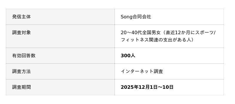 20~40代のスポーツ費用は、平均¥10万円前後/年と決して小さくありません。しかし、内訳を把握し固定費を見直すことで、健康効果を維持したままコスト最適化が可能です。Song合同会社では今後も、「お金×健康」をテーマに、生活者目線の調査・情報発信を続けてまいります。