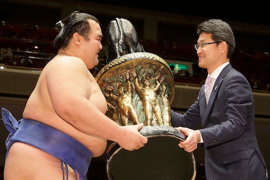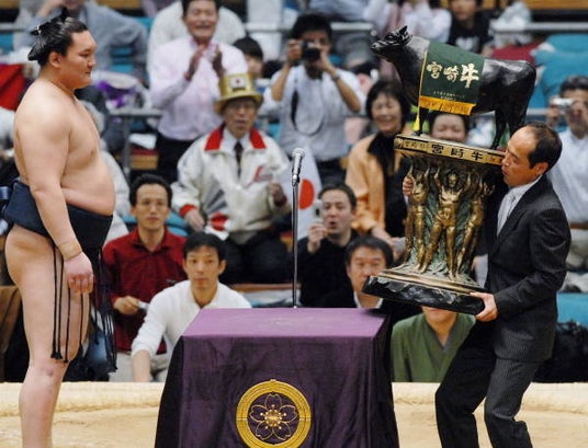 土俵上で宮崎県知事が牛像トロフィーを授与する光景は、本場所名物として国内外に広く知られ、WAGYU × SUMOを象徴する文化的シーンとして強い存在感を持っています。