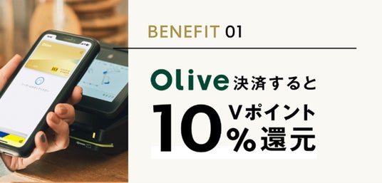 併設のスターバックスやSHARE LOUNGEのご利用料金をOliveフレキシブルペイ(クレジットモード/デビットモード)でスマホタッチ決済していただくと、決済額の10%相当のVポイントを還元いたします。