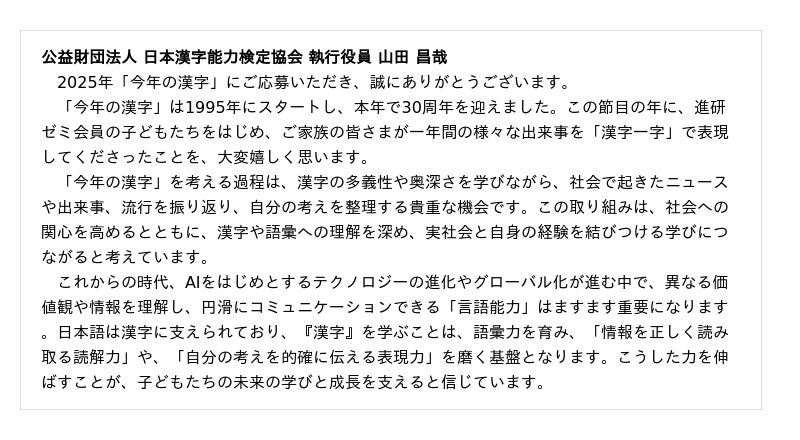 ■「進研ゼミ」と漢検協会が初のコラボレーション「今年の漢字(R)」2024