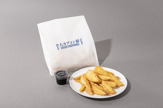 付属のパウダーを袋に入れて振り混ぜるフライドポテト! 6タイトルそれぞれをイメージしたフレーバーをお楽しみください。