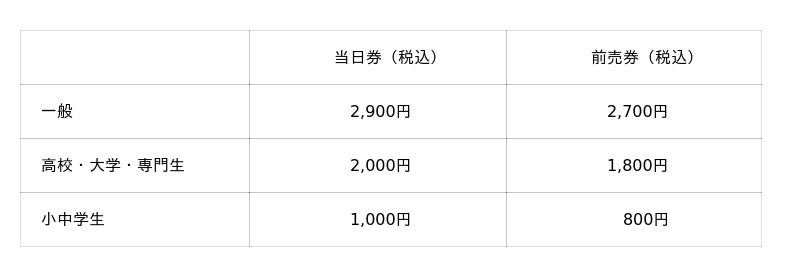 当日券 8,100円/前売券 7,500円(一般のみ)