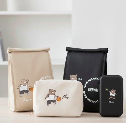 「くま部」シリーズは、ポーチ・ガジェットケース・保冷バッグなどの気軽に使える雑貨を中心に展開中。