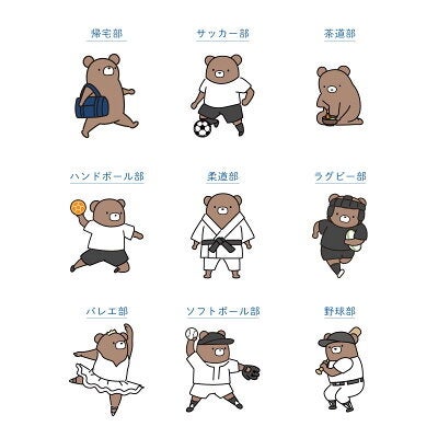 主張しすぎない可愛らしいデザインと、部活の雰囲気をそのまま切り取ったような表情のくまたち。