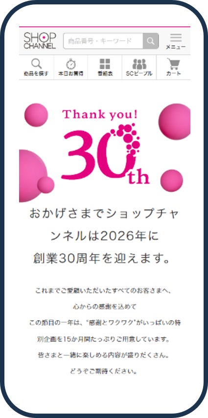 30周年イヤーは、お客さまの長年のご愛顧への感謝をお伝えするとともに、まだショップチャンネルを