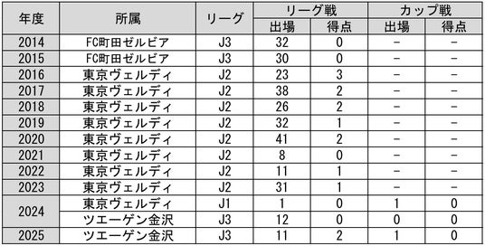 東久留米ひばりSC - 横河武蔵野FCJrユース - 東京ヴェルディユース - 法政大 - FC町田ゼルビア - 東京ヴェルディ - ツエーゲン金沢