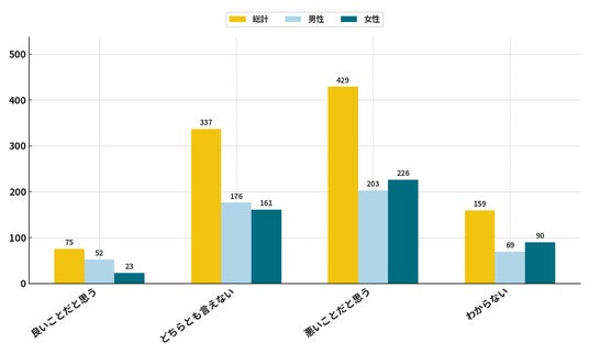 この設問では、回答者のおよそ3分の2が、何らかの形で反対や懸念を示しており、外国人への空き家売却に対する態度が圧倒的に否定的であることが明確に読み取れました。