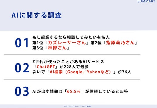 Z世代の会社員232人に調査!「もし起業するなら相談してみたい有名人ランキング」第1位はカズレーザーさん、第2位は指原莉乃さん