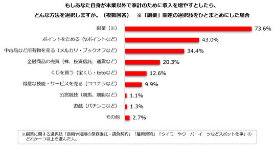 6.収入増やす方法(副業関連ひとまとめ):「副業」73.6%