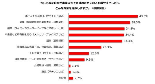 5.収入増やす方法:「ポイントためる」43.0%、「副業(委託・請負)」38.3%