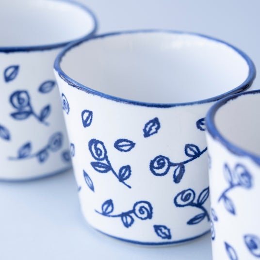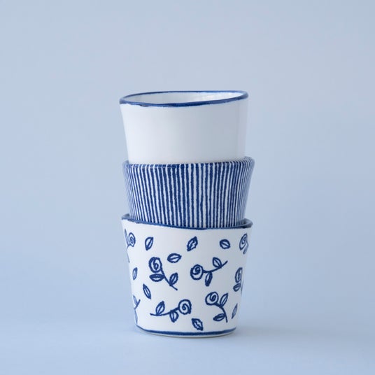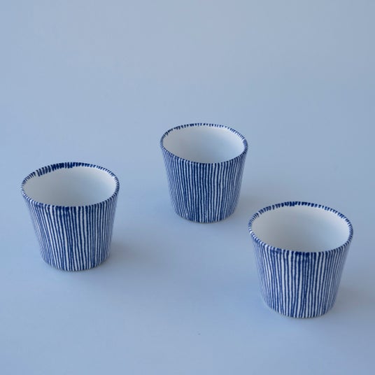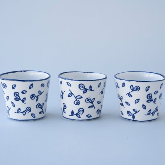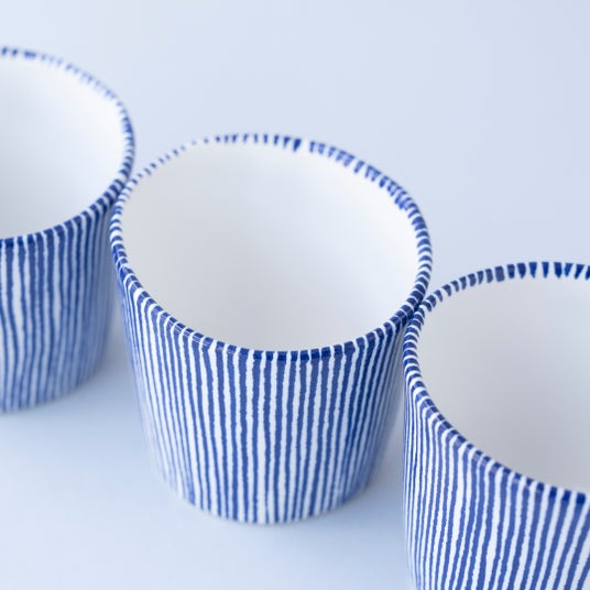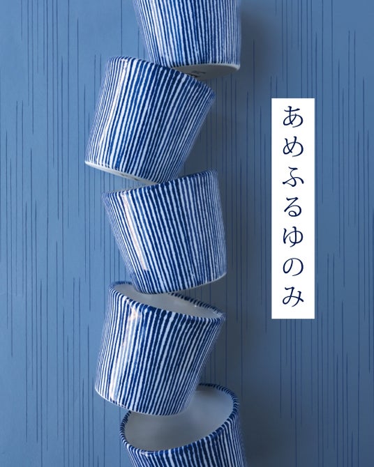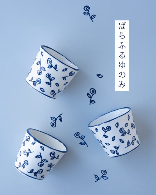 ストライプ柄の「あめふるゆのみ」とローズ柄の「ばらふるゆのみ」が新登場。お茶や日本酒を楽しむ器としてはもちろん、そば猪口やデザートカップとしても使える、万能なサイズ感です。