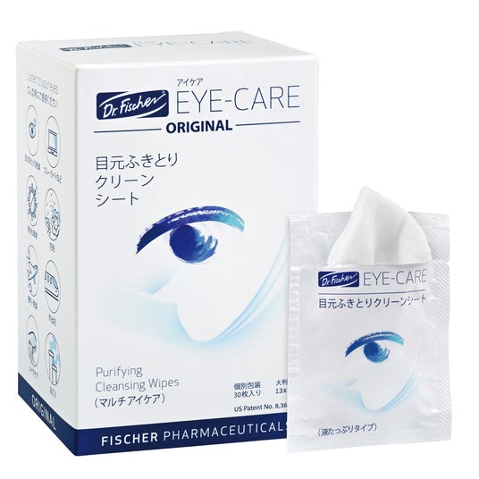 眼科科学に基づいて開発された防腐剤不使用・滅菌済みのドクター・フィッシャーの目元ふきとりシート「アイケア」を、ぜひお試しください。