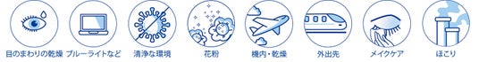 乾きやすい目元や、花粉による不快感、目の疲れ、スクリーンによる刺激から目元をやさしくケアします。