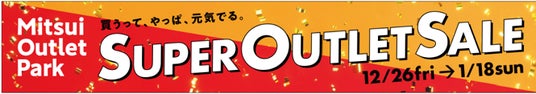 「SUPER OUTLET SALE」は、三井アウトレットパークが半期に一度、総力をあげて開催する最大級のセール。最大80%OFFになる見逃せないおトクなチャンスです。今すぐ着られる冬物アイテム、時計や靴などのファッション小物、生活雑貨などを驚きの価格でバリエーション豊富にとりそろえています。今年の年末年始は、ぜひ三井アウトレットパークで、おトクなお買物と楽しいひとときをお過ごしください。開催期間 : 2025年12月26日(金)~2026年1月18日(日)
