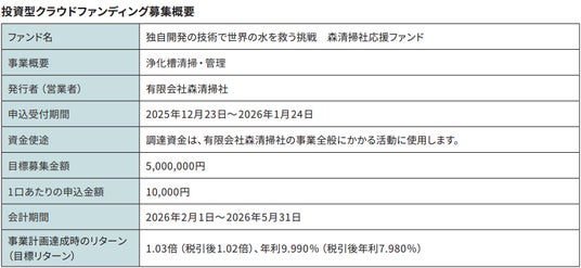 香川から世界へ! 持続可能な水インフラを守る取組に挑戦する森清掃社を応援 投資型クラウドファンディング「Sony Bank GATE」新規ファンド募集(12月23日募集開始)