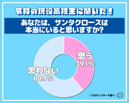「あなたは、サンタクロースは本当にいると思いますか?」この調査に対し、「いると思う」と回答したのが39.1%、