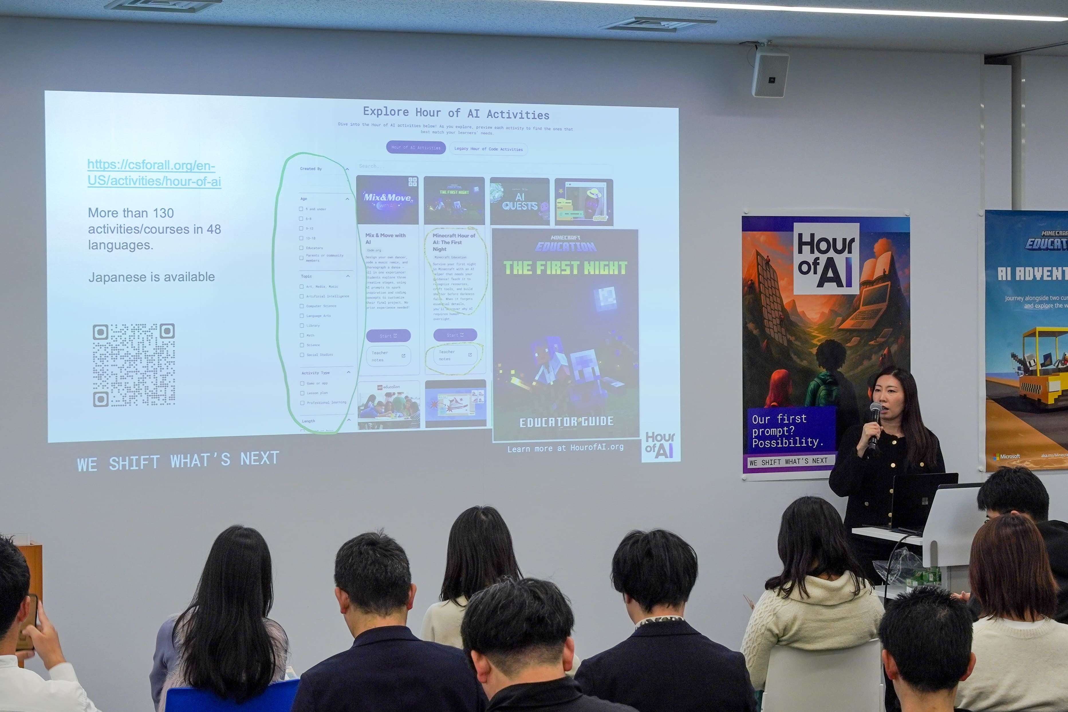 (教育現場ですぐに使える100以上のHour of AI教材を紹介する清水愛子氏)
