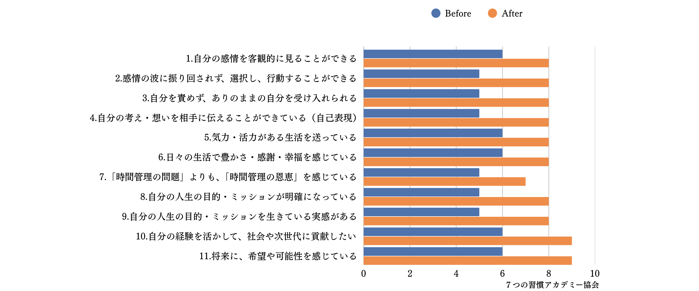 自己評価スコアが平均2~3点(10点満点)向上していることが確認されました。
