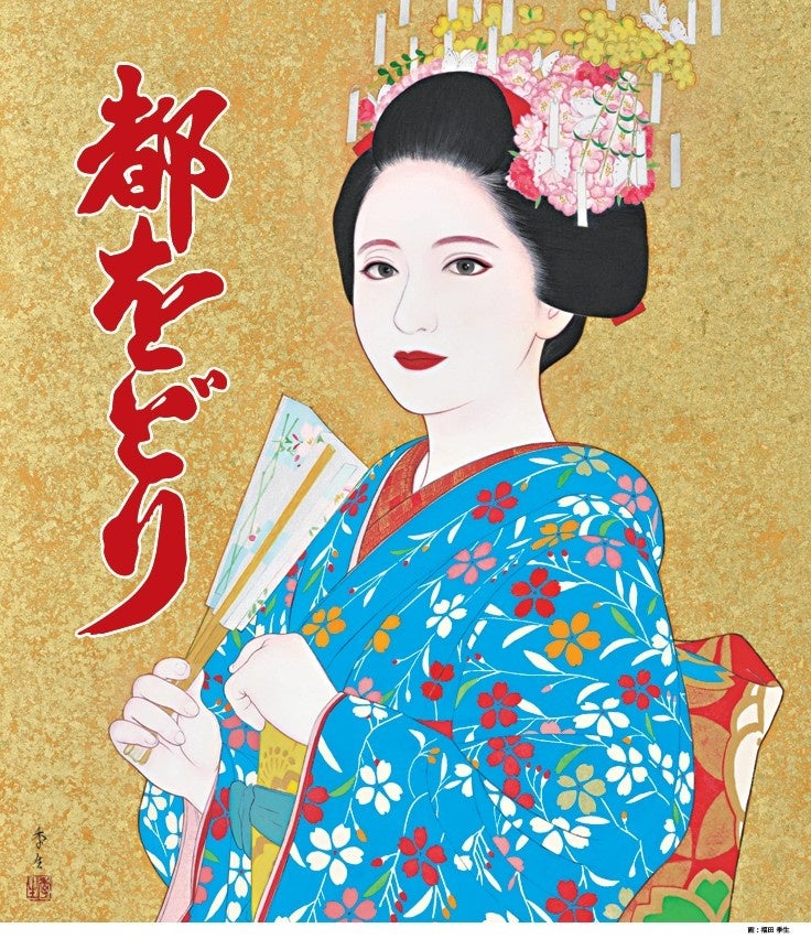 「都をどり」のポスターは、時代を代表する日本画家が毎年制作しています。今年のポスターは、福田(ふくだ)季生(きはる)氏が祇園甲部の舞妓を描きました。福田氏は、京都市立芸術大学院日本画科を修了後、関西を拠点に女性をテーマにした日本画を制作しています。