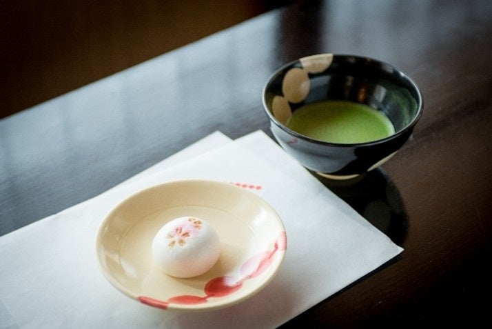 茶券付一等観覧券をご購入の方には、公演前にお茶席にて、京風島田まげを結い黒紋付の衿裏返しという正装で芸妓が披露するお点前をご覧いただけます。お点前は、テーブルと椅子を使って行われる「立礼式」と呼ばれる形式で行いますが、これは都をどりのために考案されたもので、明治5年の都をどりのお茶席で初めて披露されました。正座をすることが困難な外国からの賓客をもてなす為に誕生したという由緒があります。創始当時に想いを馳せながら開演前のひととき、お菓子とお抹茶をお楽しみください。