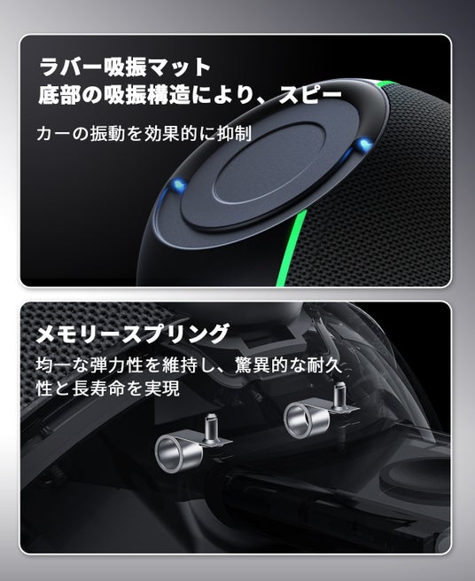 2つの独自特許技術が、究極のユーザー体験と品質を支えています 。底部に採用されたラバー吸振マットは真空吸着構造により、スピーカーの振動を効果的に抑制してクリアな音を保ちます 。また、内部のメモリースプリングは均一な弾力性を維持し、驚異的な耐久性と長寿命を実現しました 。。目に見えない部分にまで徹底的にこだわり、使い心地の良さと堅牢さを追求した設計です。