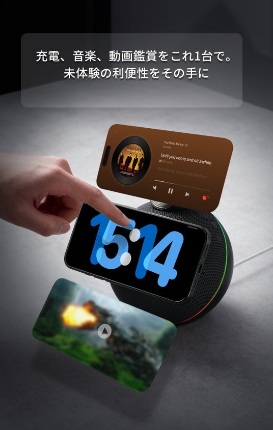 1月16日(金)11時にCAMPFIREにて登場:「QI2.2搭載」25W爆速充電×本格Hi-Fi、3-in-1スピーカー。今すぐ事前登録で最大50%OFF!
