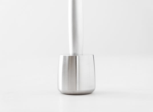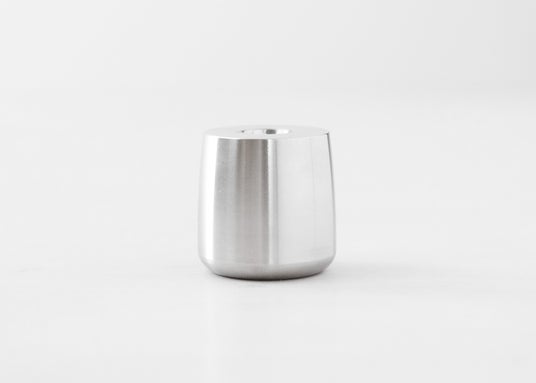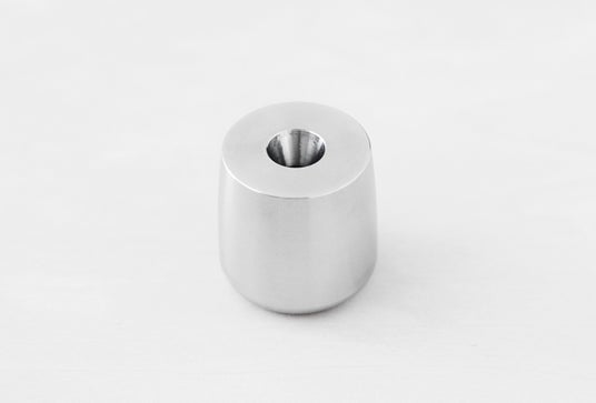 金属の塊から削り出した質感と重厚感ステンレススチールの塊からNC旋盤で削り出しました。3cm四方に収まるコンパクトな佇まいでありながら、金属無垢材ならではの重さを感じられます。