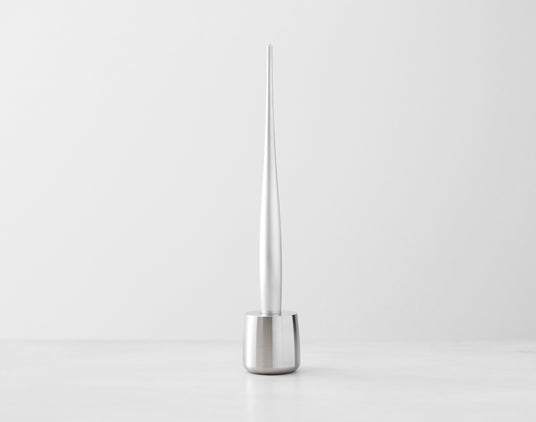 金属の塊から旋盤加工で生み出した、素の造形美。金属加工の技術を手元で感じられるペンホルダー。