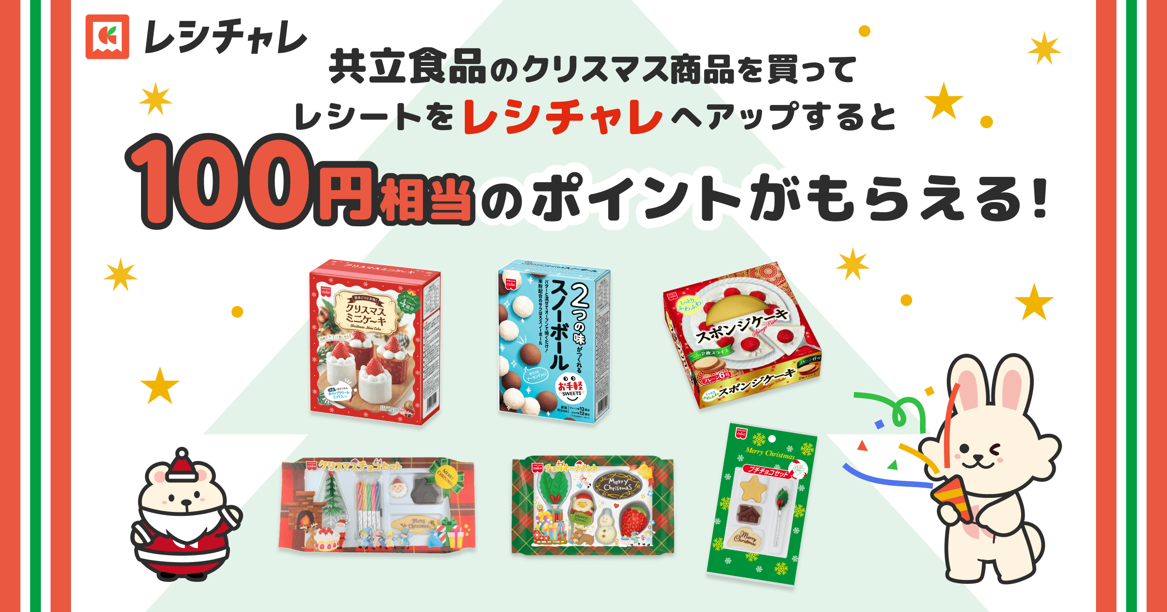 【100円相当を還元!】共立食品の人気クリスマス商品購入&レシートアップロードでポイントがもらえる! レシート買取りアプ…