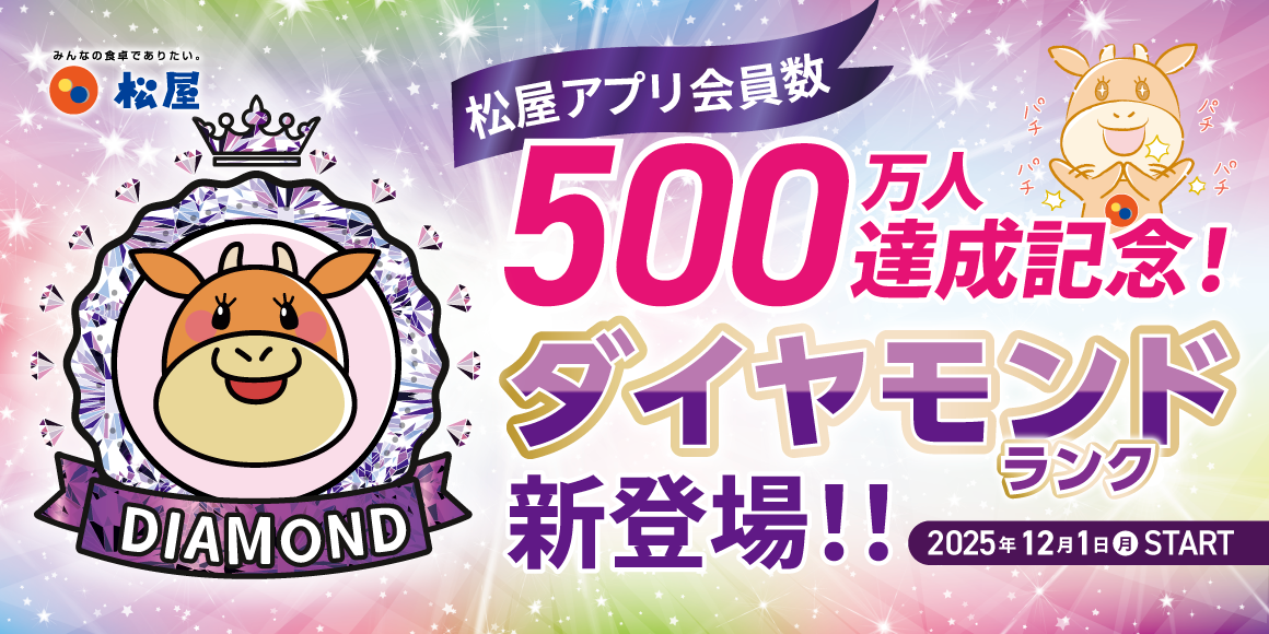 【松屋フーズ】松屋アプリ会員数500万人達成記念!「ダイヤモンドランク」登場!